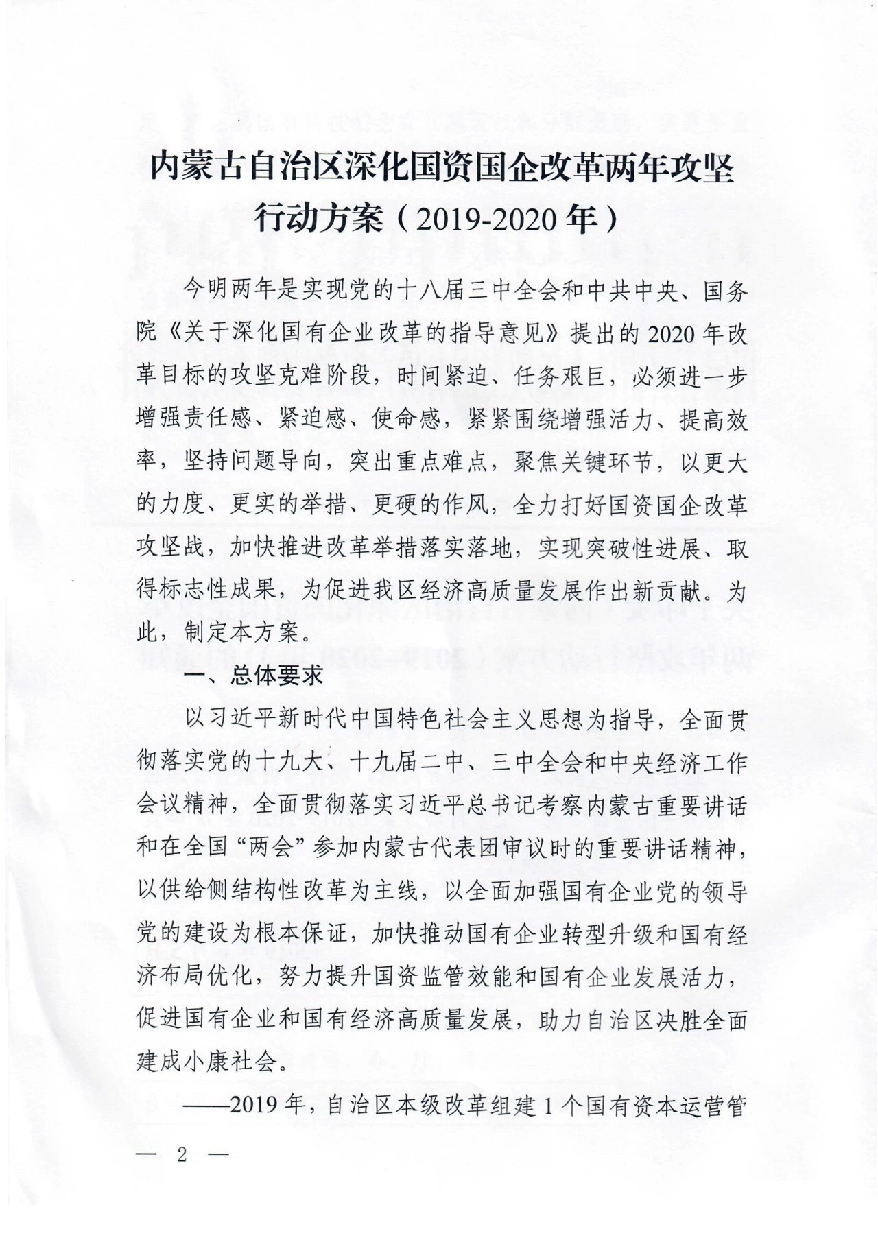 經(jīng)自治區(qū)人民政府有關(guān)領(lǐng)導(dǎo)同意,現(xiàn)將《內(nèi)蒙古自治區(qū)深化國資國企改革兩年攻堅行動方案(2019年-2020年)》印發(fā)給你們,請認真貫徹執(zhí)行。