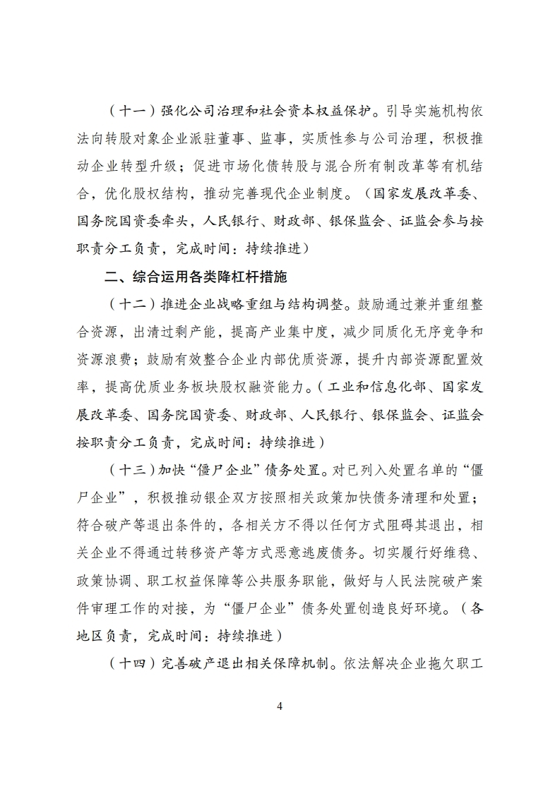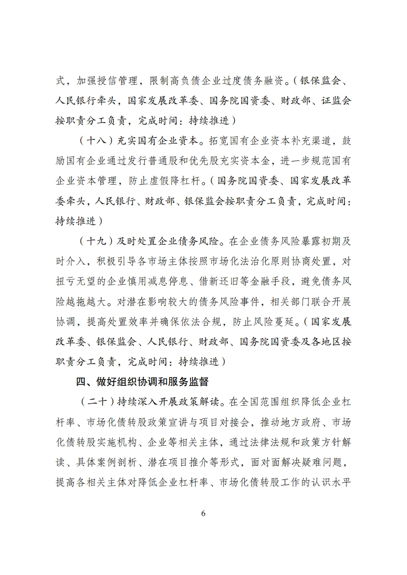 各省、自治區(qū)、直轄市、計劃單列市人民政府,新疆生產(chǎn)建設(shè)兵團(tuán),積極穩(wěn)妥降低企業(yè)杠桿率工作部際聯(lián)席會議各成員部門和單位、審計署,國有大型商業(yè)銀行、股份制商業(yè)銀行: